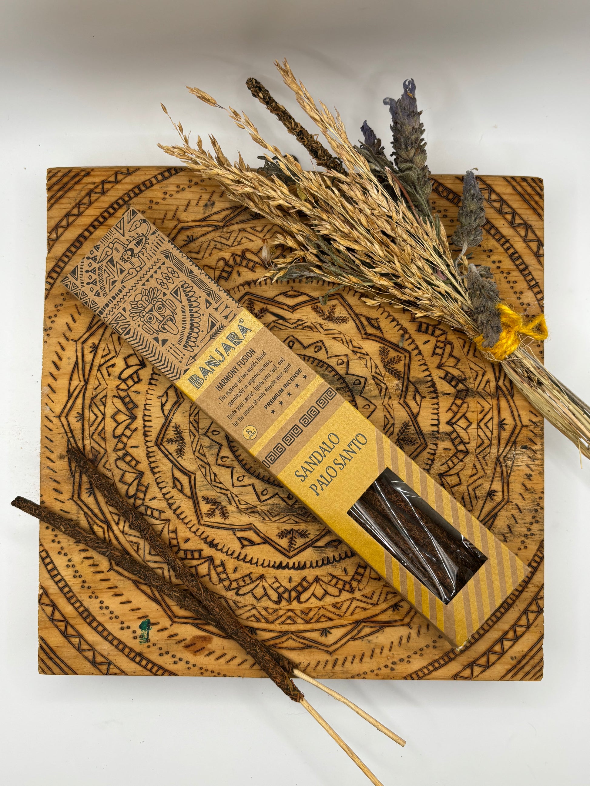 Este incienso artesanal fusiona dos poderosos elementos de la naturaleza: el Sándalo, conocido por su fragancia cálida y envolvente, y el Palo Santo, un elemento sagrado usado para limpiar la energía y elevar el espíritu. Hecho a mano en la India 🇮🇳 con ingredientes naturales, es ideal para rituales, meditaciones o momentos de conexión interior.