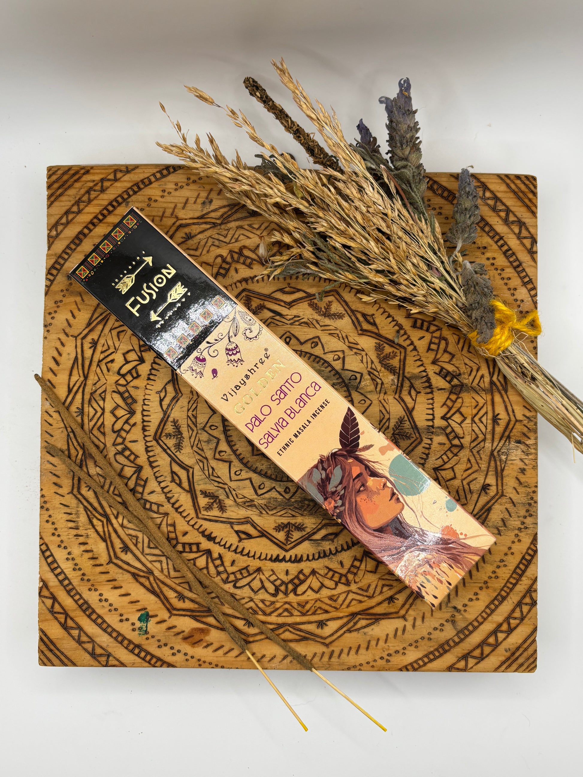 Este incienso en varilla 🌾 fusiona dos elementos sagrados de gran poder espiritual: el Palo Santo, la madera purificadora, y la Salvia Blanca, planta tradicionalmente utilizada en rituales de limpieza energética. Su aroma herbal eleva la vibra de cualquier espacio ✨