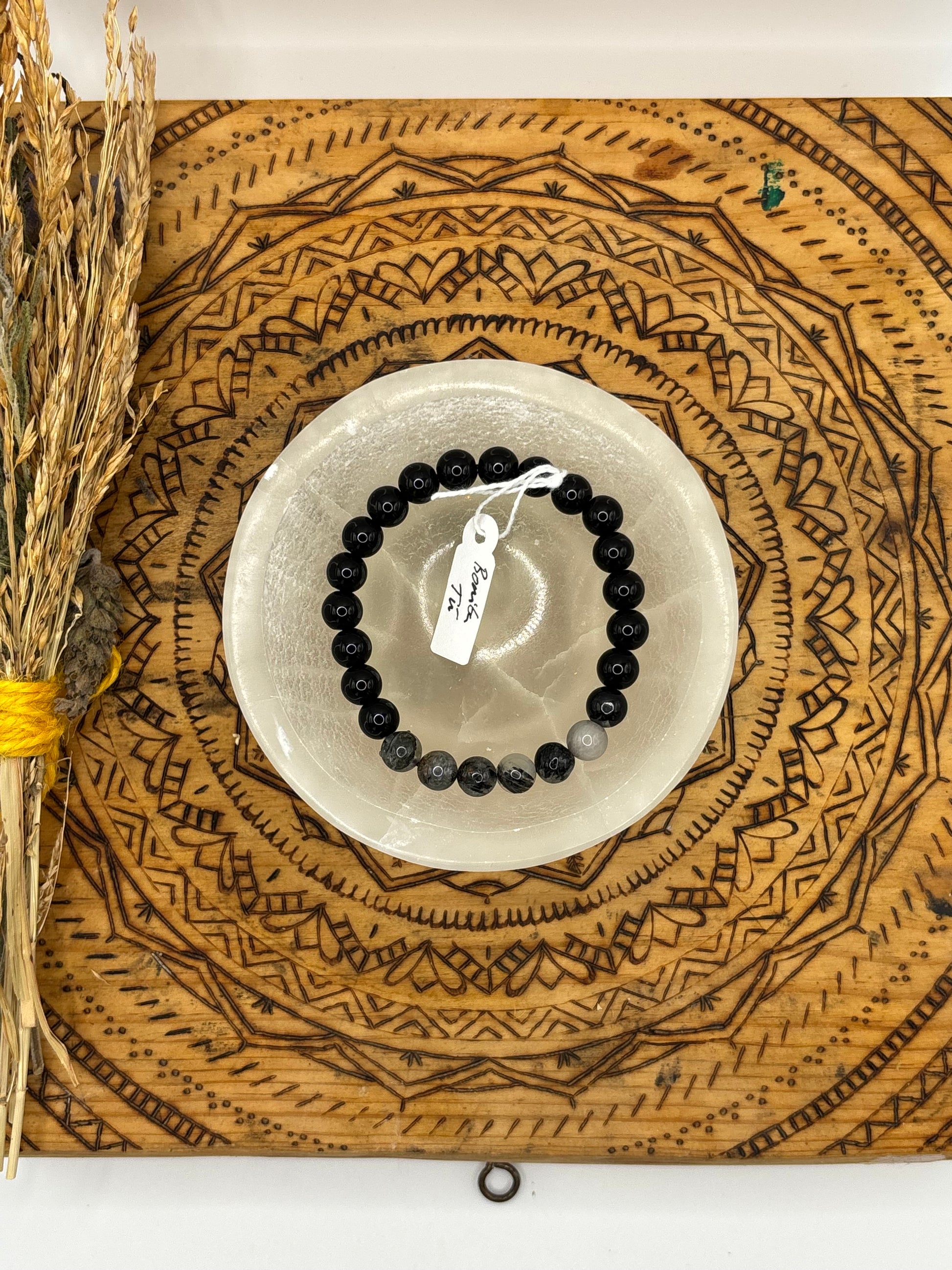 🤍 Pulsera Obsidiana y Cuarzo Blanco – “Luz y Protección del Alma” ✨